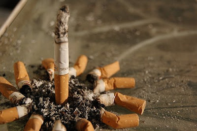 Before any unwordly American expires from an apoplectic fit brought about by the use of 'fag' and 'butt' together, allow me to point out that in the UK the word fag is slang for a cigaretter. And what online article is complete without a small play on words? Whatever your opinion of the habit, the cigarette butts used in this composition provoke thought and discussion to say the least about the nature of nicotine consumption. Addicts are the slave to the tobacco god, but what does the tobacco worship?
